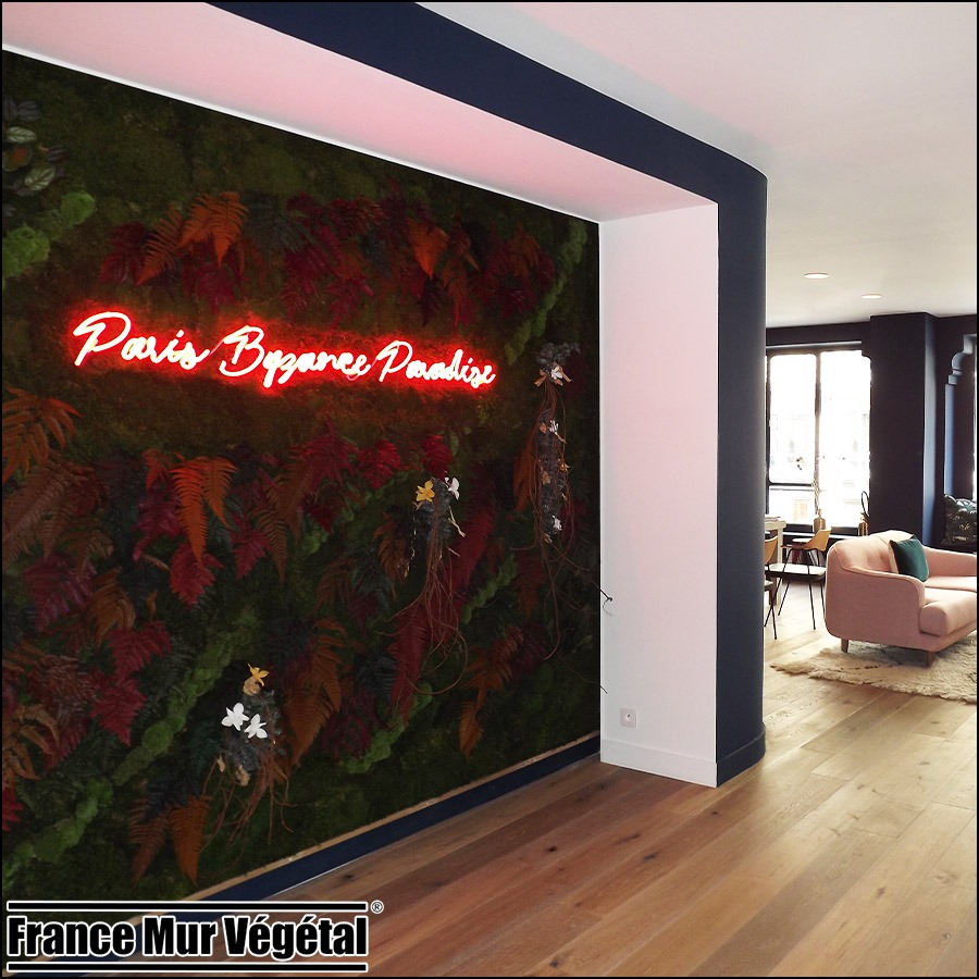 Création & installation de mur végétal stabilisé et artificiel haut de gamme sans entretien. Mise en place de plafond végétal, conception de décoration végétale, décors végétaux et agencement végétal. Nous intervenons en Ile-de-France (Paris 75, Seine-et-Marne 77, Yvelines 78, Essonne 91, Hauts-de-Seine 92, Seine-Saint-Denis 93, Val-de-Marne 94, Val-d’Oise 95), dans la région Centre-Val de Loire (Eure et Loir 28, Loir et Cher 41, Loiret 45, Cher 18, Indre-et-Loire 37, Indre 36), la Normandie (Eure 27, Orne 61, Seine-Maritime 76, Calvados 14, Manche 50), ainsi que dans toute la France (selon projet). Vous souhaitez obtenir un devis, des informations sur la mise en place d’un mur végétal ou pour la décoration végétale d’un espace ? N’hésitez pas à nous contacter pour la réalisation de votre projet.
